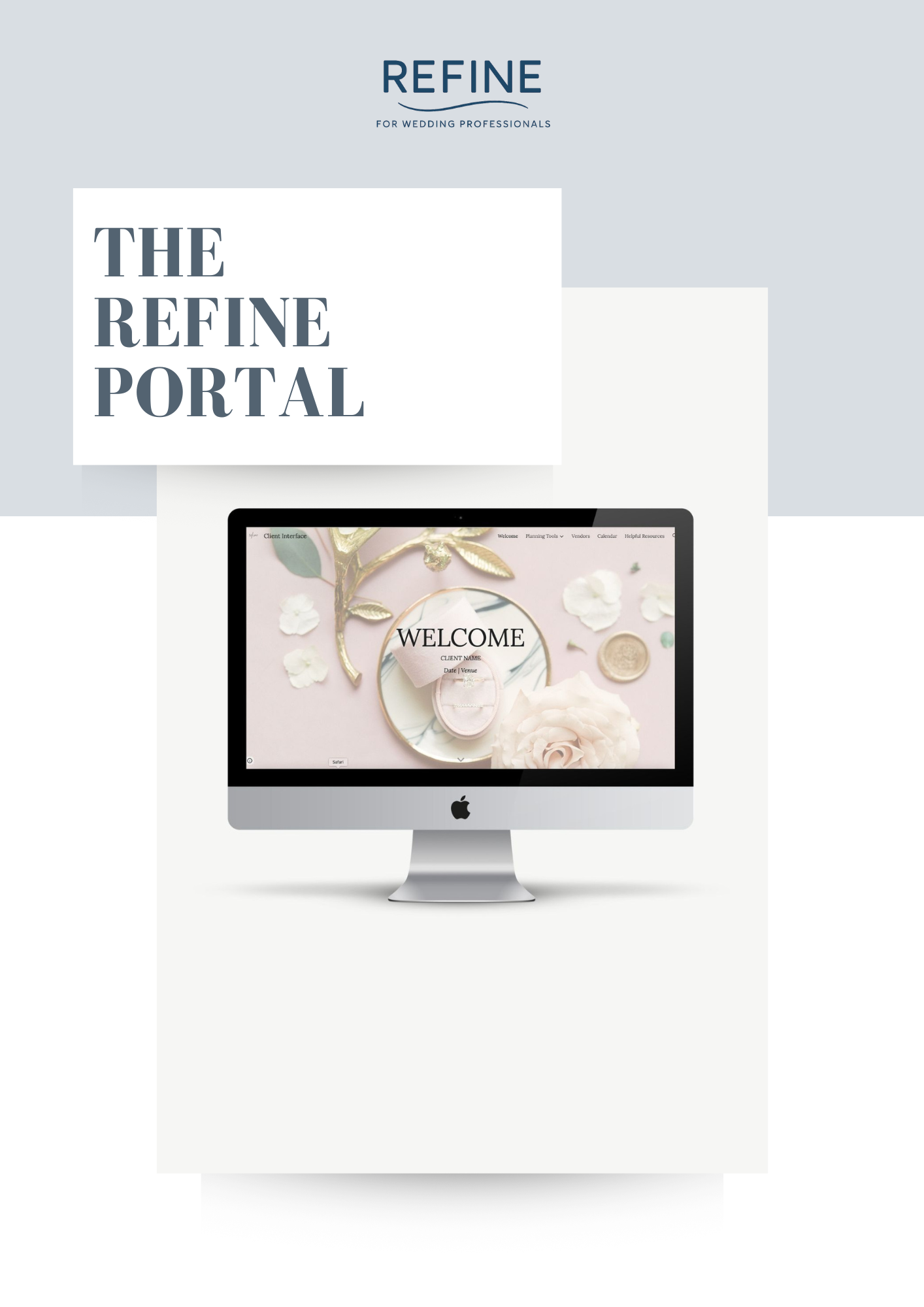 Welcome to the Everything page, where you’ll find, well… everything. If it helps you streamline, strengthen, or stop tolerating nonsense in your business, it’s here. $797 If you’re ready to raise the bar across your entire business, this bundle puts every Refine tool in your hands at once. I Want It All $597 The Refine Portal gives you more than organization. It gives you the actual planning process, checklists, and meeting frameworks you need to run weddings with confidence. Level me up